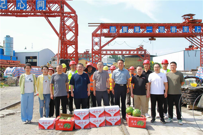 6月11日,昌通路橋公司總經(jīng)理趙鑫,支部書記樊新波,副總經(jīng)理?xiàng)顖?jiān)、李俊杰、孫博一行先后深入S244王官橋搶修項(xiàng)目、公司梁場(chǎng)、場(chǎng)站、310養(yǎng)護(hù)項(xiàng)目施工現(xiàn)場(chǎng),開展“夏季送清涼、愛心到一線”慰問活動(dòng),公司辦公室、黨辦、安全部工作人員陪同。