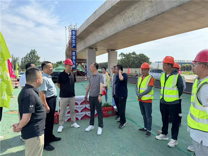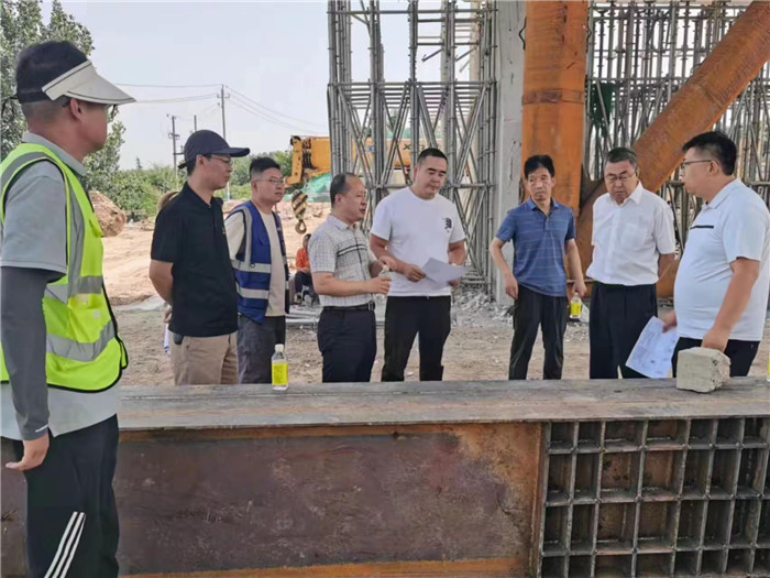 6月24日,昌通路橋總經(jīng)理趙鑫、副總經(jīng)理孫博一行深入S244線G209跨線橋改造項(xiàng)目施工現(xiàn)場(chǎng),實(shí)地查看項(xiàng)目進(jìn)展情況,認(rèn)真聽取項(xiàng)目負(fù)責(zé)同志匯報(bào),詳細(xì)了解橋梁下部結(jié)構(gòu)完成情況及上部結(jié)構(gòu)節(jié)點(diǎn)推進(jìn)、工期計(jì)劃等。趙總對(duì)項(xiàng)目進(jìn)展表示肯定,并就下步工作提出具體要求。公司相關(guān)科室負(fù)責(zé)同志陪同。