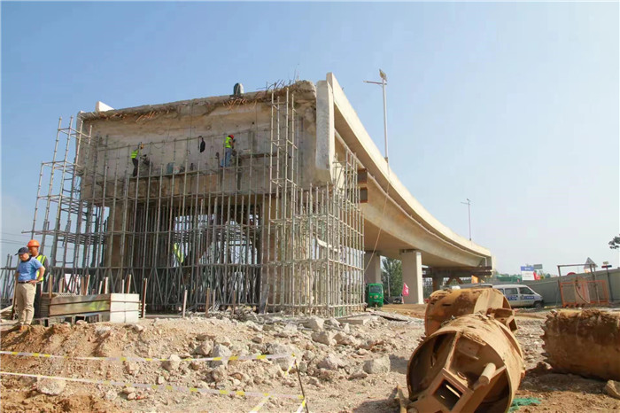 三門峽西收費(fèi)站拱形骨架施工中