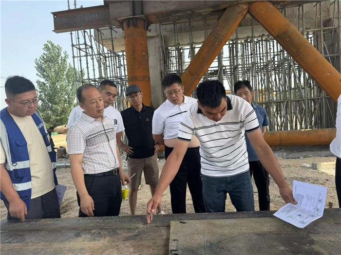 6月25日,市公路事業(yè)發(fā)展中心總工趙兵、養(yǎng)護(hù)科科長(zhǎng)張紅雁、趙志偉、總監(jiān)劉克輝及設(shè)計(jì)一行至S244線G209跨線橋改造項(xiàng)目,現(xiàn)場(chǎng)了解橋梁下部結(jié)構(gòu)及各分項(xiàng)工程施工情況,趙總要求橋梁鋼支撐頂升專項(xiàng)施工加強(qiáng)設(shè)計(jì)、施工安全系數(shù)及安全措施,并給出具體指導(dǎo)意見。